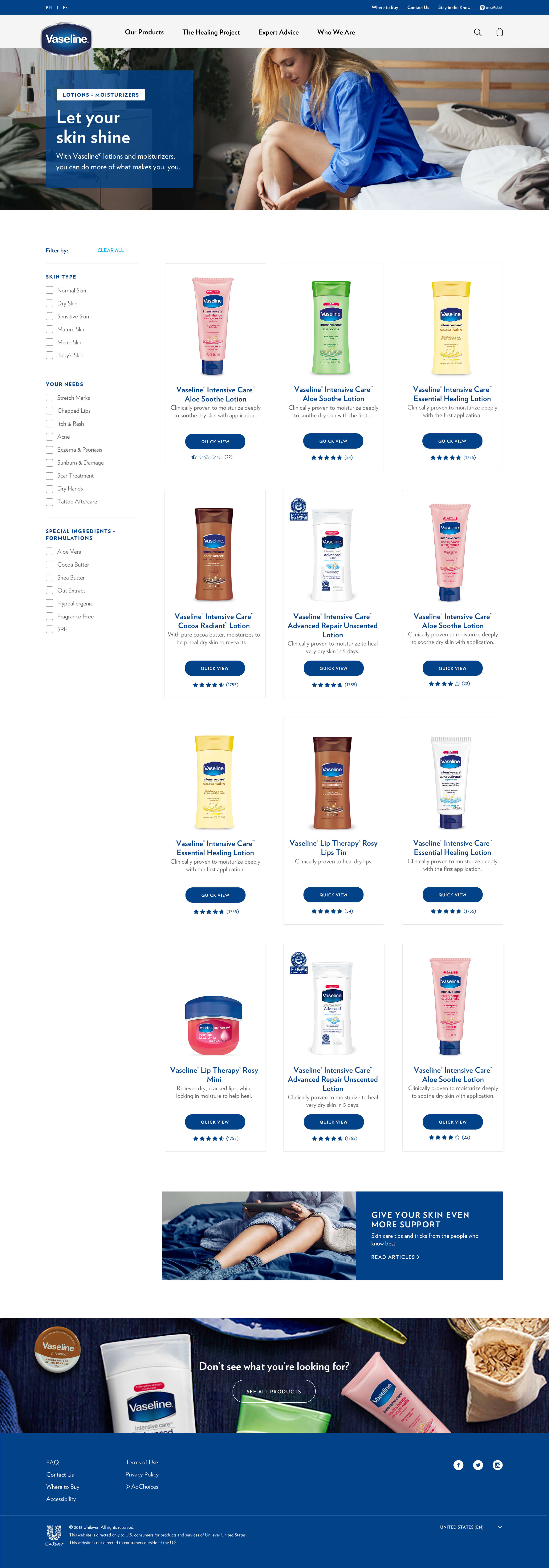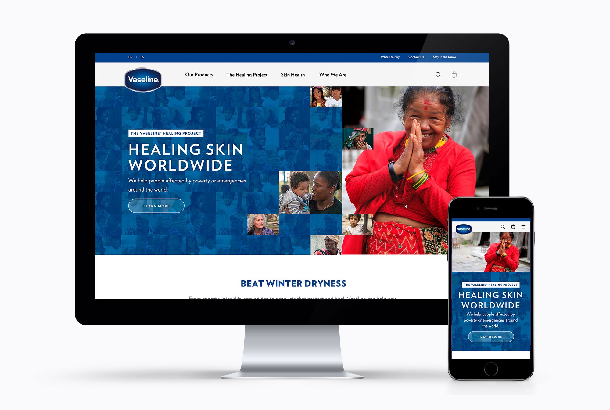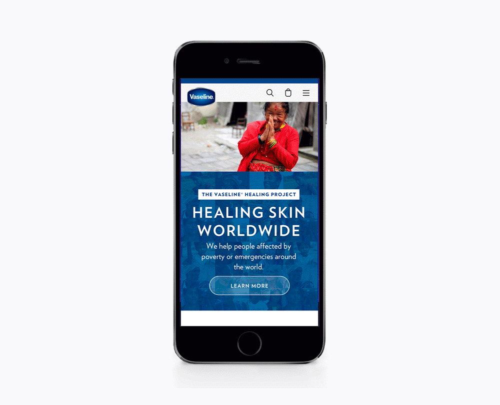 Vaseline wanted to redesign their website to reflect new brand identity and increase awareness of their aid initiative, The Vaseline Healing Project, which provides care and medical supplies around the world.