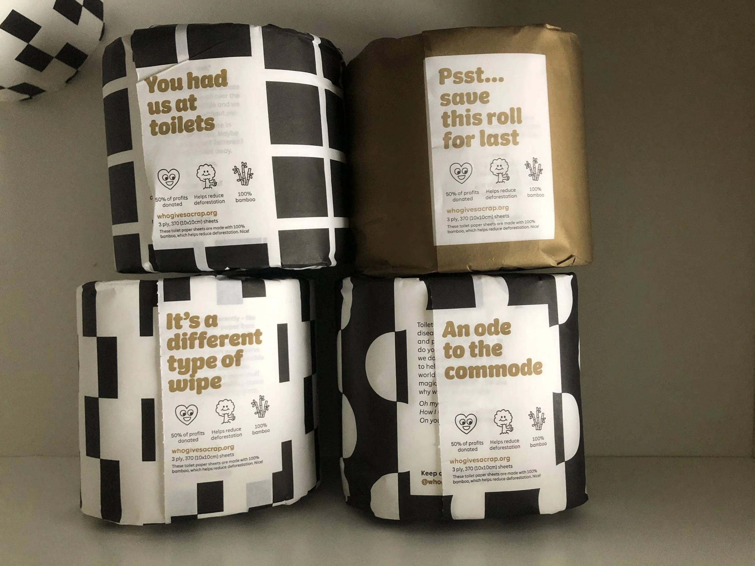 Who Gives a Crap formed in 2012 after learning that more than 2 billion people didn't have access to a toilet. 50% of profits donated to clean water and sanitation non-profits. Capital was raised on Indiegogo.*