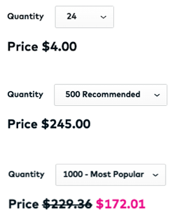 For business owners, cost is a significant factor in determining purchase decisions. Total cost had been displayed, but per unit cost was buried. Default quantity values were inconsistent — from a minimum to recommended or popular amount.