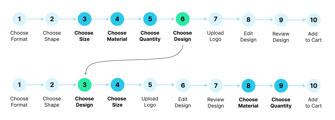 Conduct more testing to avoid false assumptions. Initial research had assumed drop-off was due to Labels & Stickers configuration method