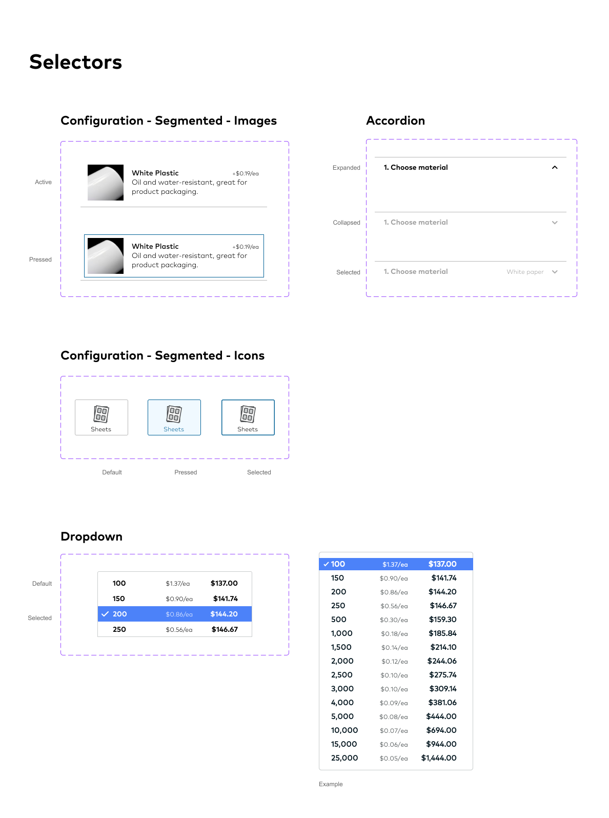 Detailed consumer-friendly descriptions and photos helped differentiate configuration options. Consumer-friendly language also replaced industry terminology (ie. Material instead of Substrate, Plastic instead of BOPP)